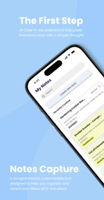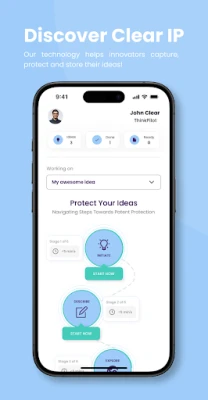 Our app doesn’t just protect your ideas; it motivates you to keep innovating. Through interactive progress tracking and goal setting, Clear IP turns intellectual property management and idea capture into an engaging, rewarding experience.